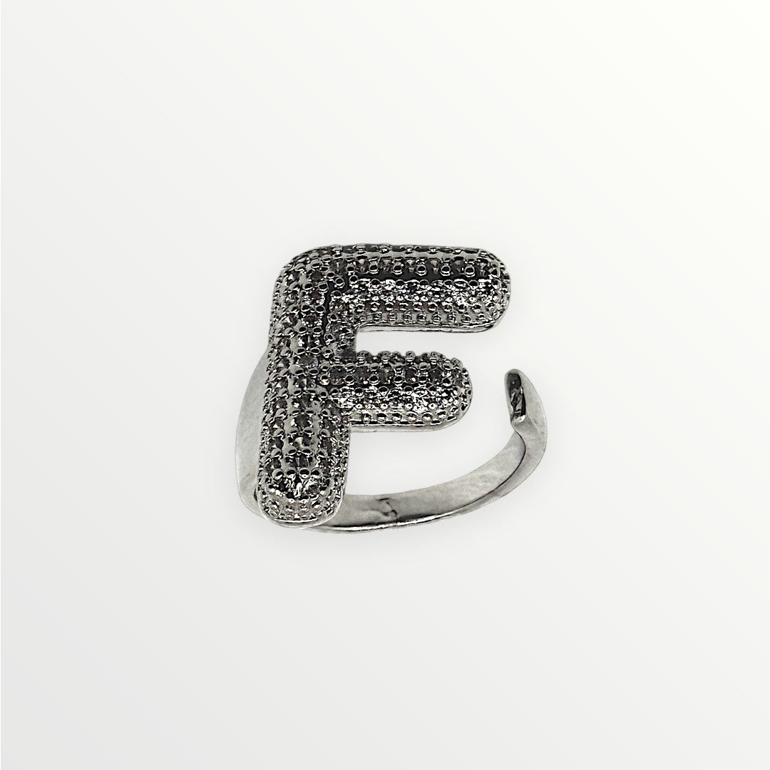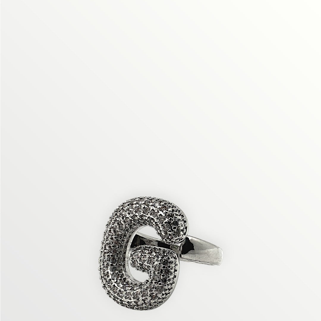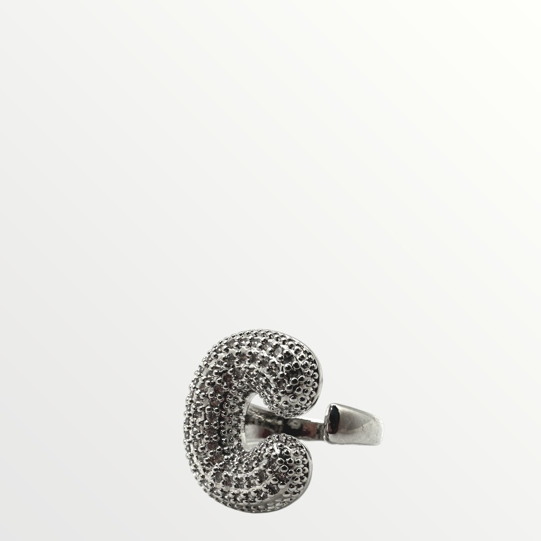 Anello in ottone, caratterizzato da una superficie tempestata di micro zirconi che donano brillantezza e risalto al design.
