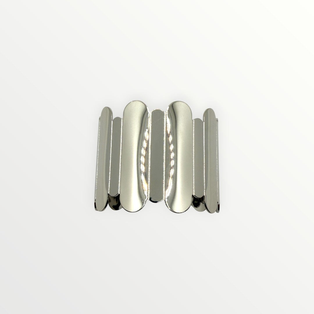 Bracciale rigido realizzato in ferro/vetro che creano un bellissimo gioco di riflessi. La struttura è solida e presenta un design essenziale, pensato per chi cerca un accessorio di bigiotteria originale e d'impatto, capace di completare il look con un tocco di colore e luce.