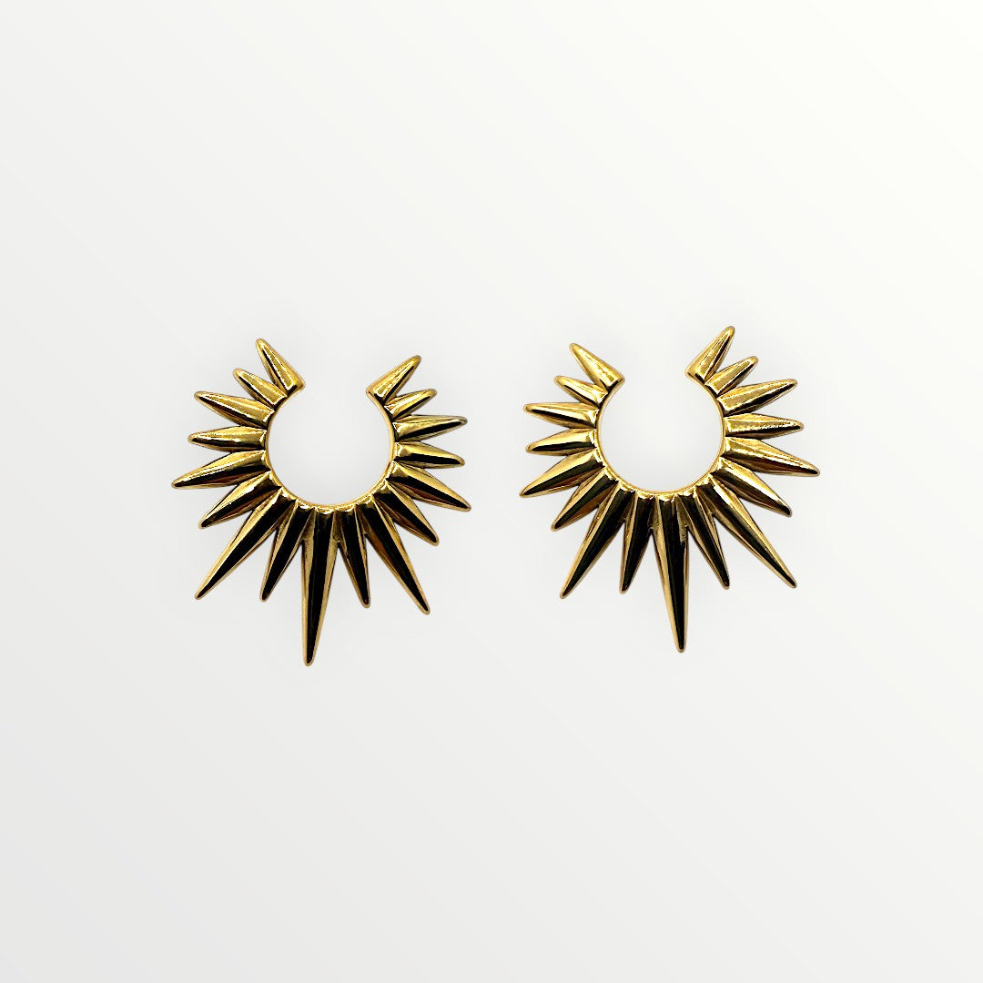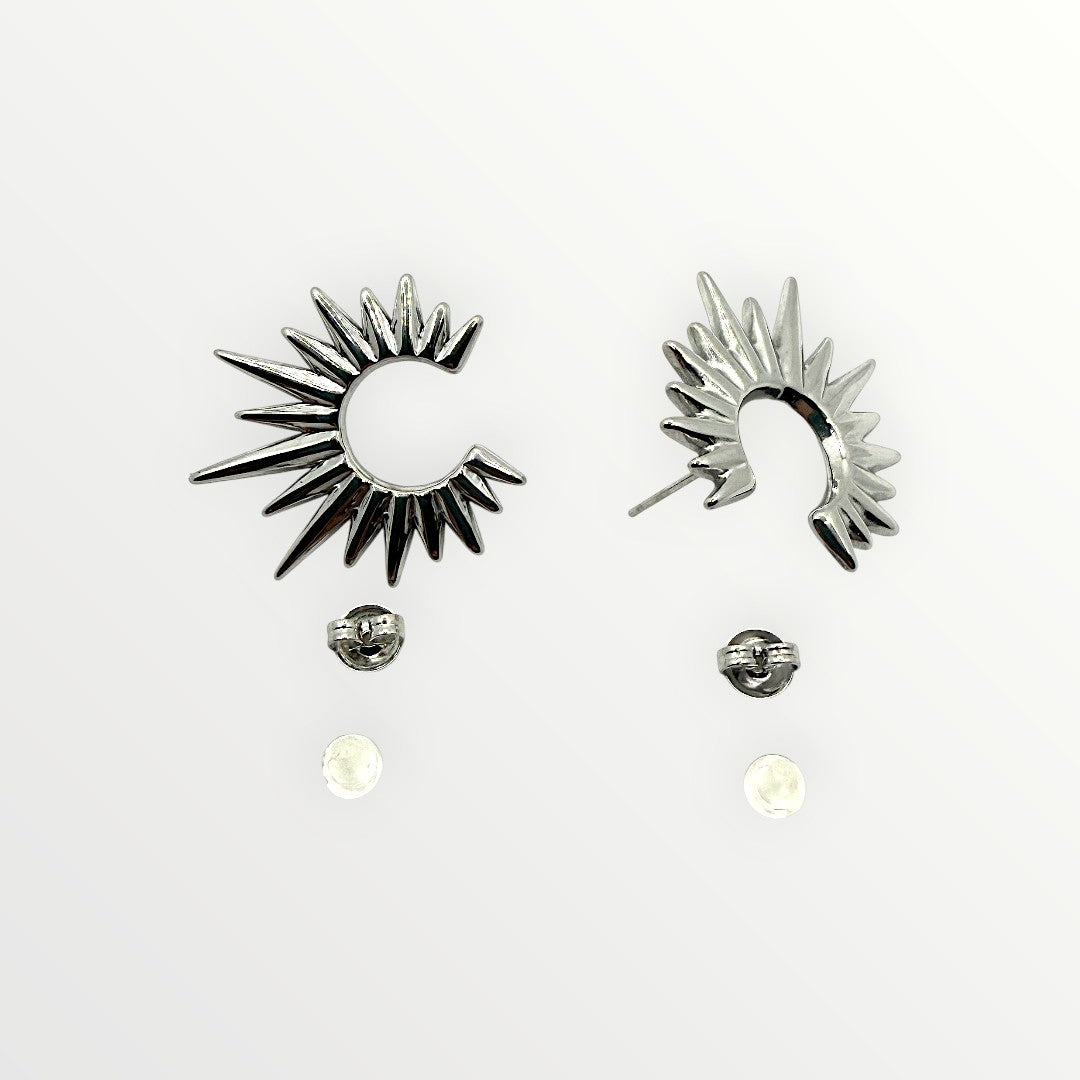 Orecchini a forma di sole dal design audace e contemporaneo.
